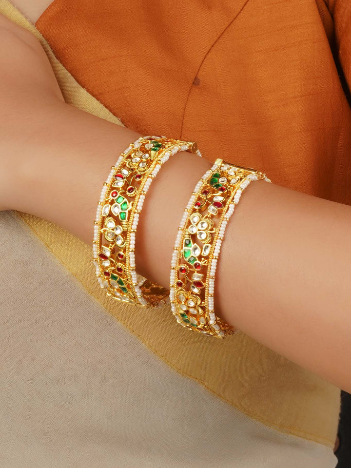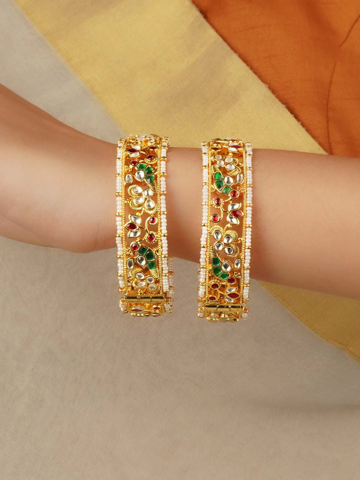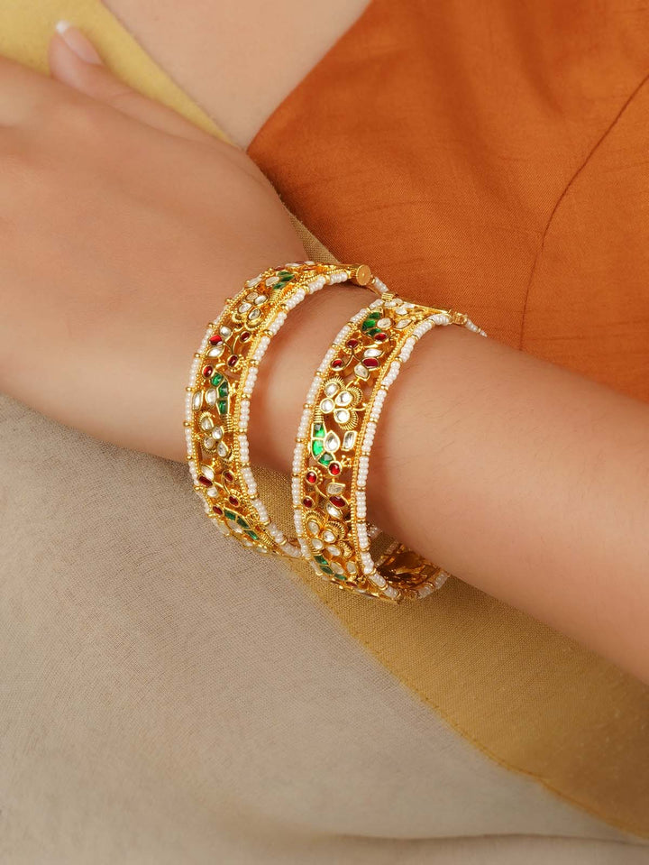 Gold Plated Jadau Kundan Bangles (One Pair) - MB200