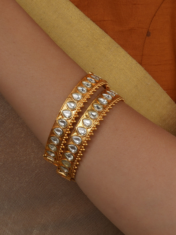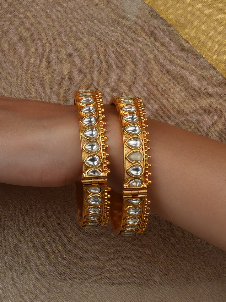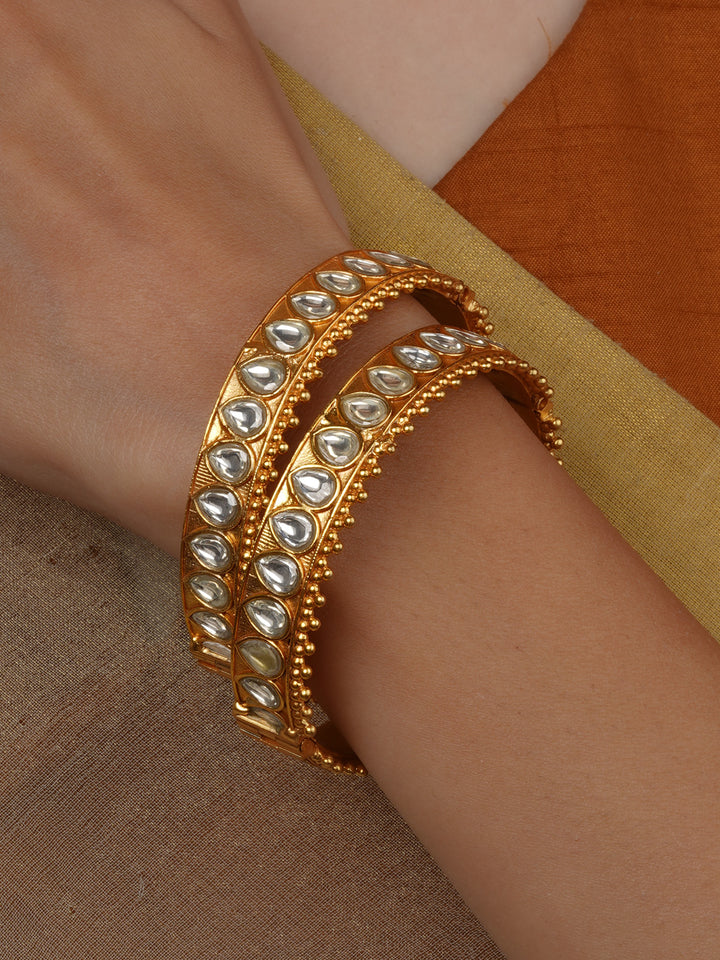 White Color Gold Plated Jadau Kundan Bangles (One Pair) - MB235W