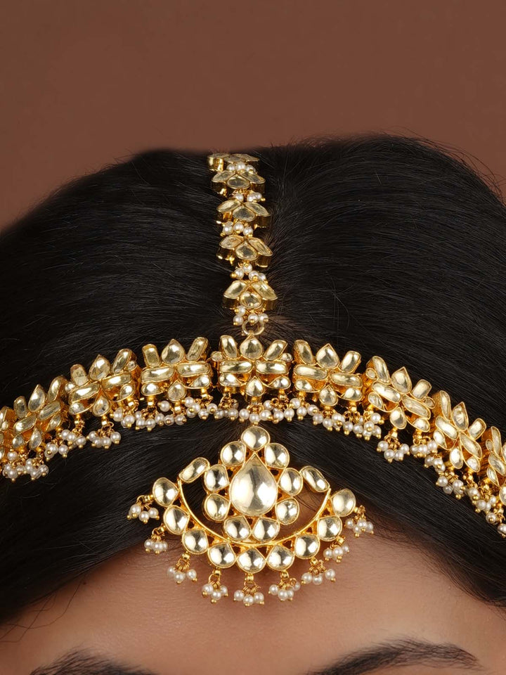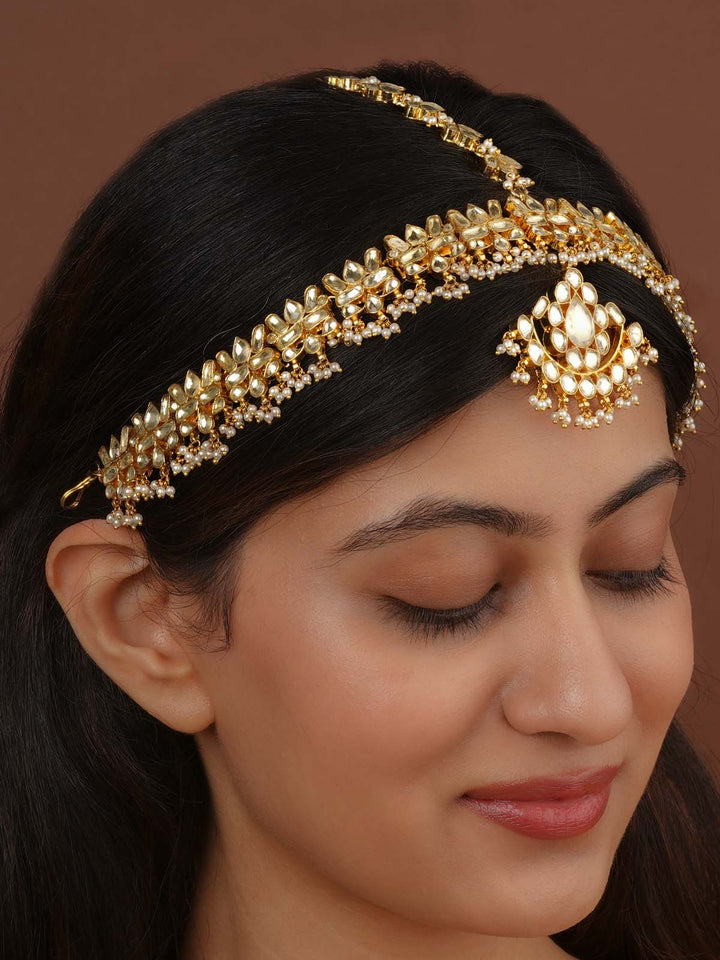 White Color Gold Plated Jadau Kundan Mathapatti - MM99Y
