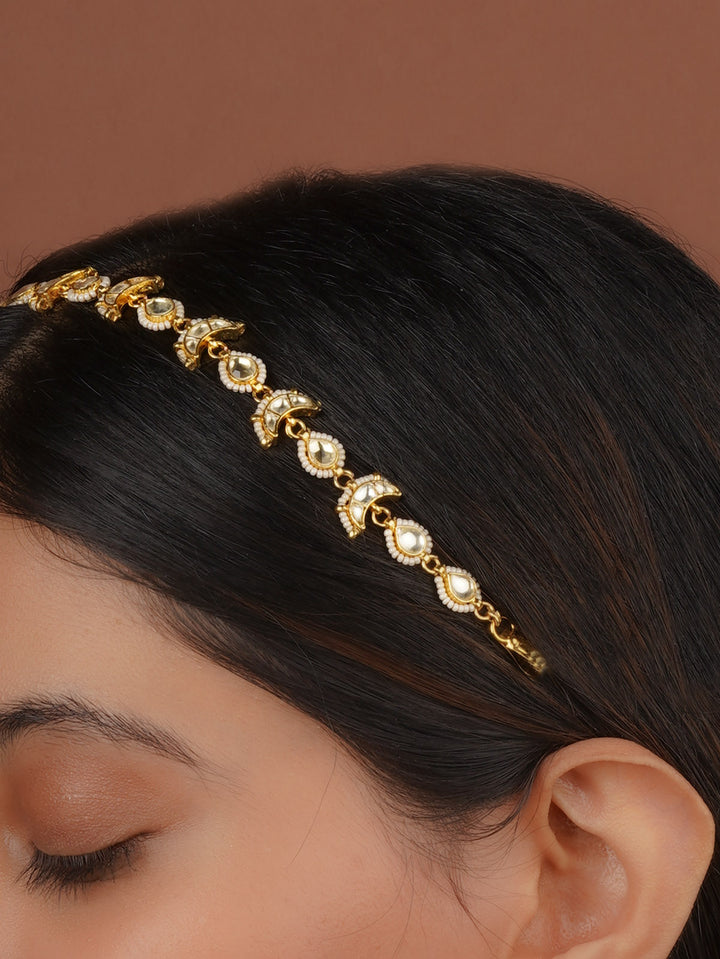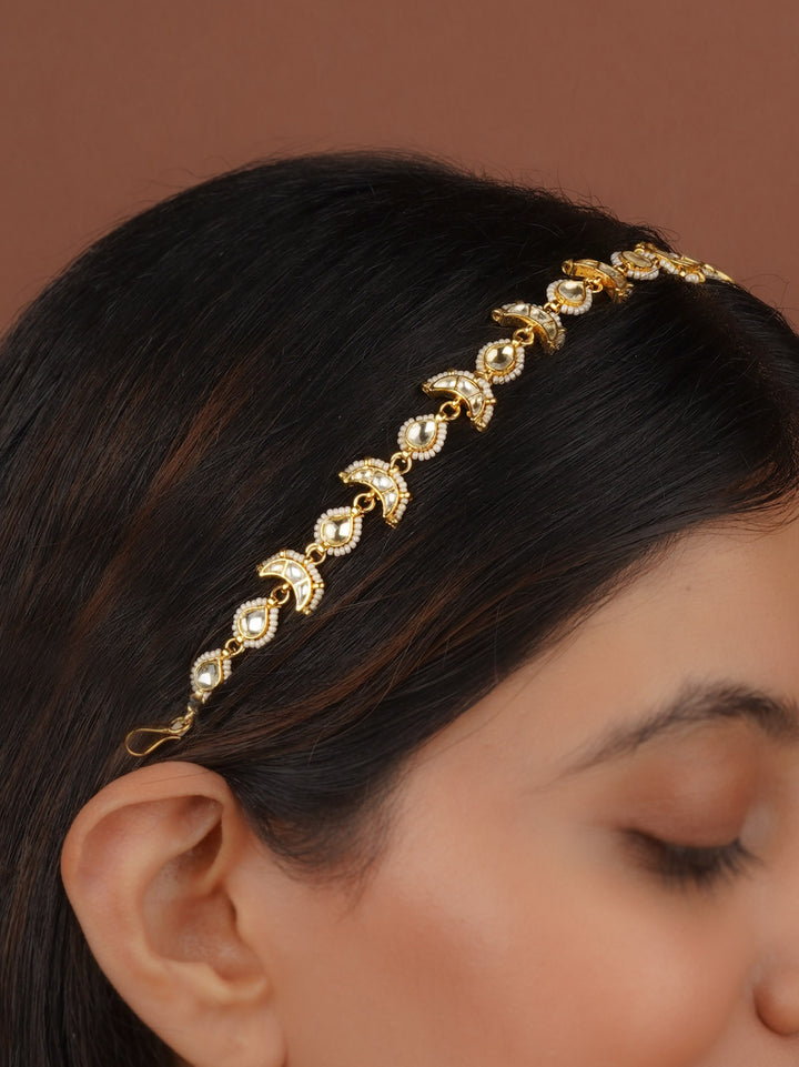 White Color Gold Plated Jadau Kundan Sheeshphool - MHA221Y