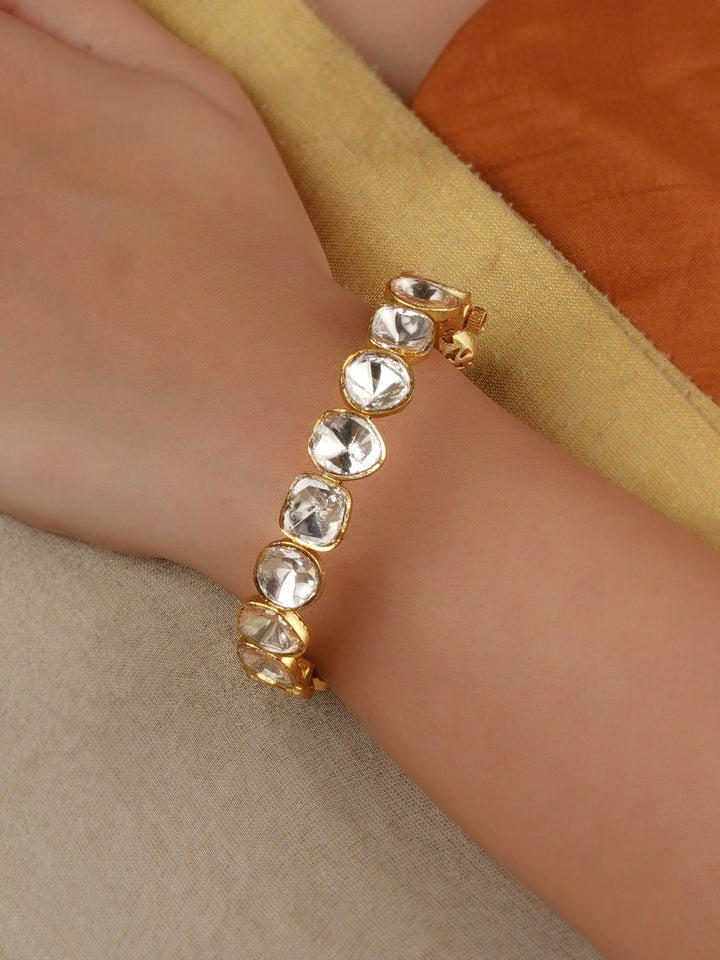 White Color Gold Plated Moissanite Bangles (One Pair) - MO-B22