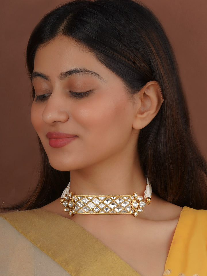 White Color Gold Plated Thappa Jadau Kundan Necklace - TJ-N20