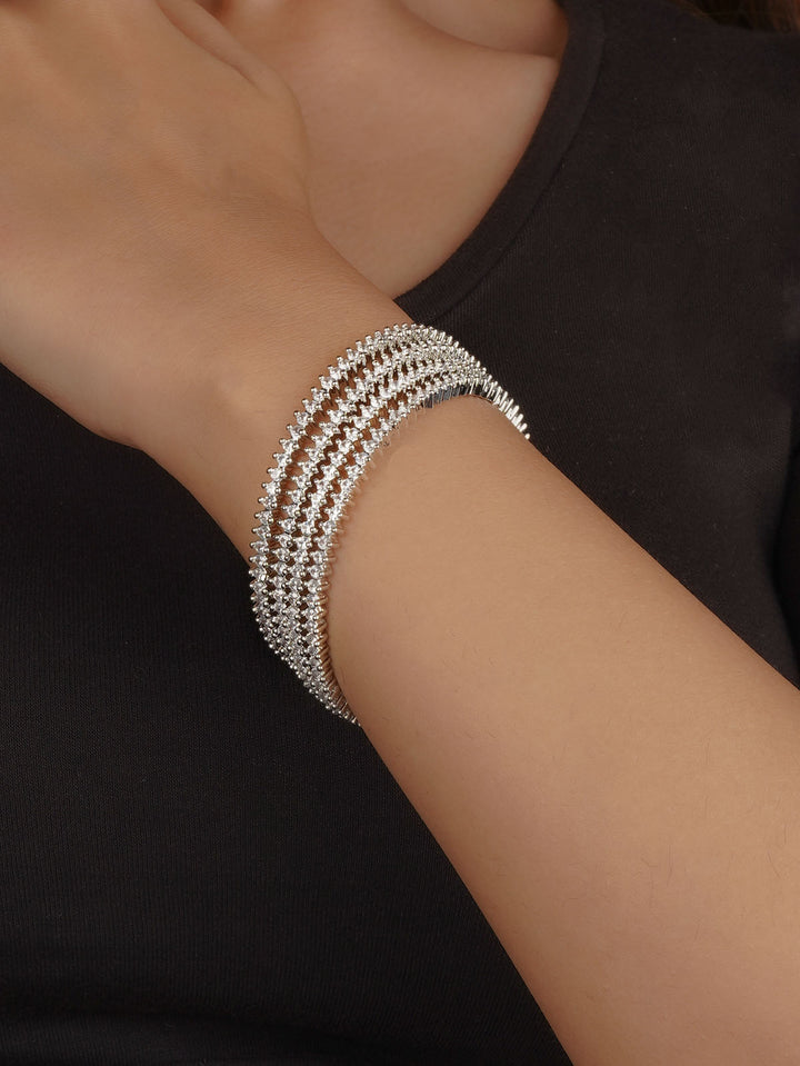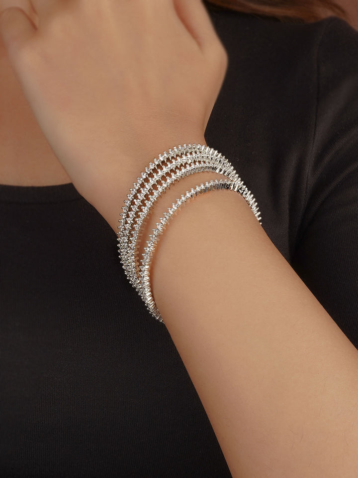 White Color Silver Plated Faux Diamond Bangles (Set of 4) - CZBANGLE78