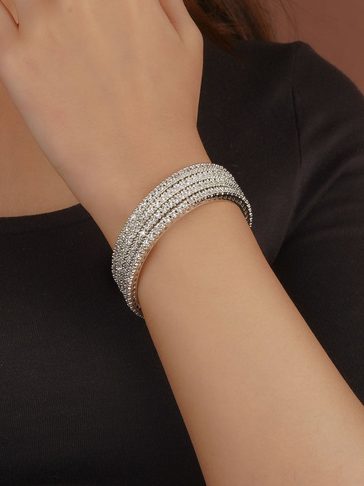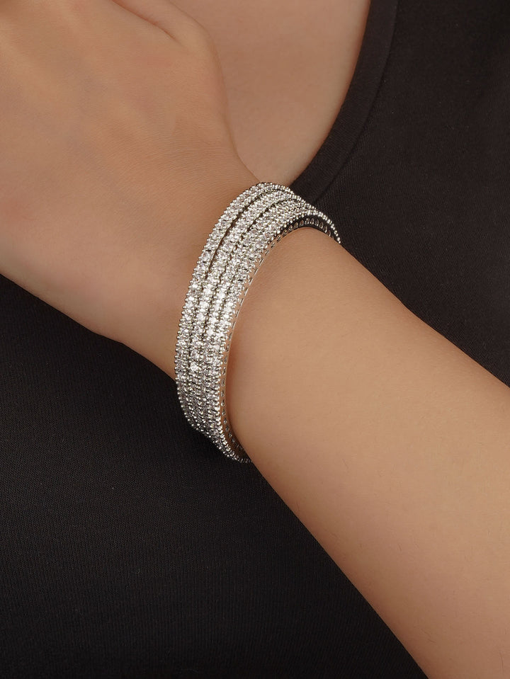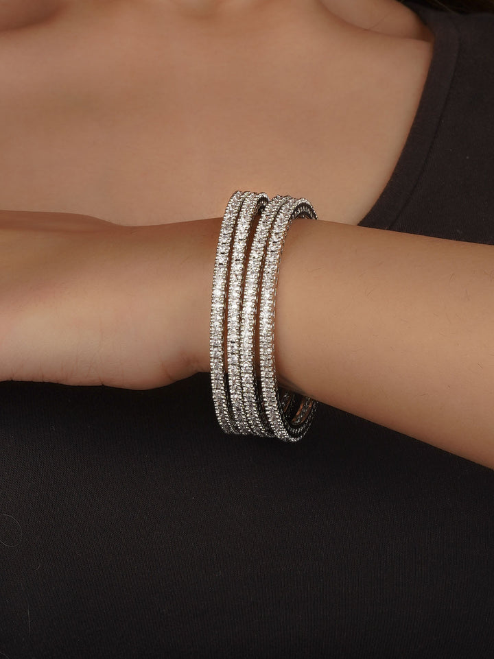 White Color Silver Plated Faux Diamond Bangles (Set of 4) - CZBANGLE80