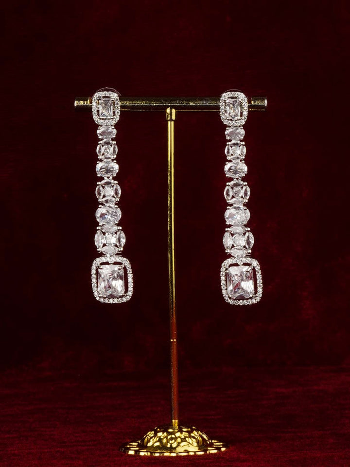 White Color Silver Plated Faux Diamond Earrings - CZEAR612