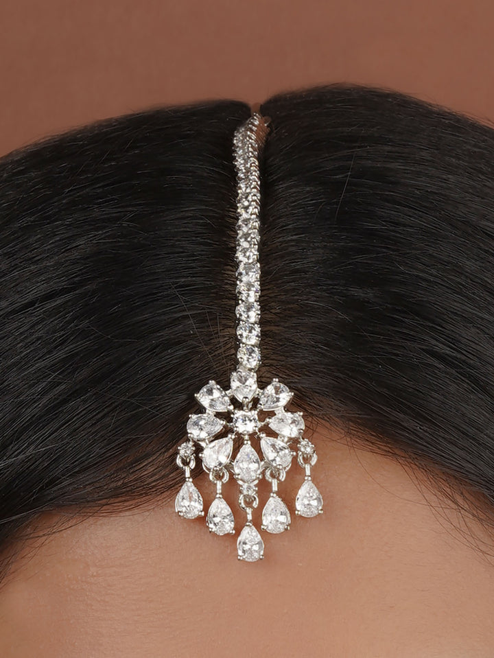 White Color Silver Plated Faux Diamond Maangteeka - CZT48