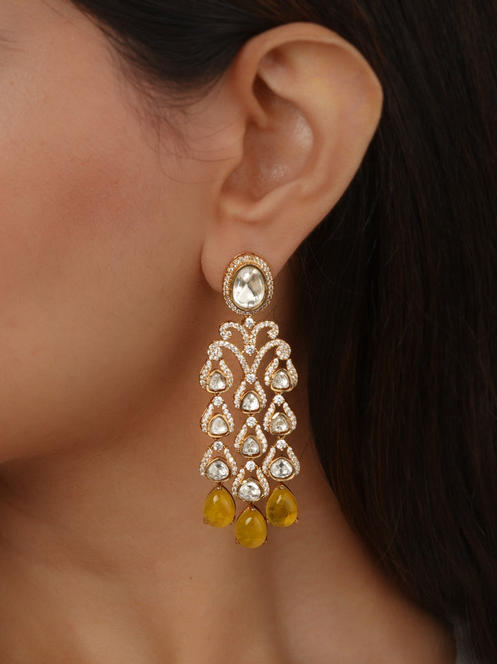 Yellow Color Gold Plated Faux Polki Earrings - PK-E133Y