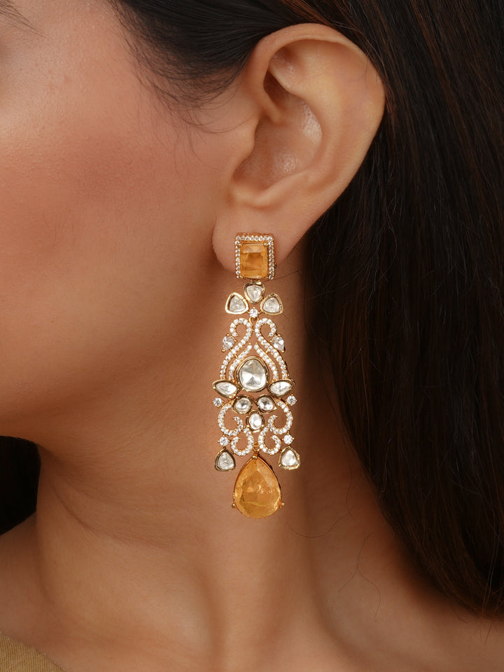 Yellow Color Gold Plated Faux Polki Earrings - PK-E148Y